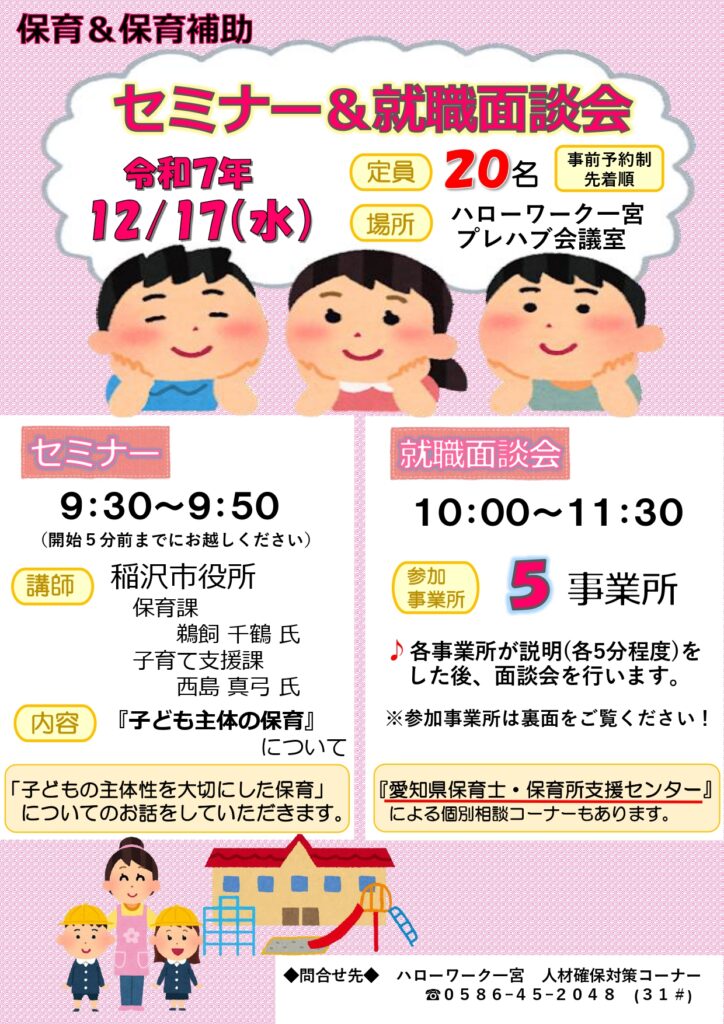 愛知県保育士・保育所支援センターによる個別相談コーナーもありますので
