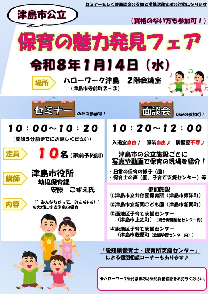 愛知県保育士・保育所支援センターによる個別相談コーナーもありますのでぜひご参加ください!!